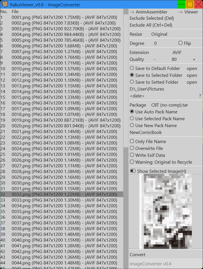Exportable formats: aAVIF, aWEBP, aJXL, PNG, JPG, ICO, CBZ, CB7, CBT, PDF
